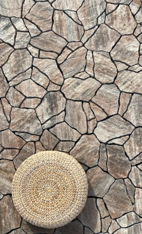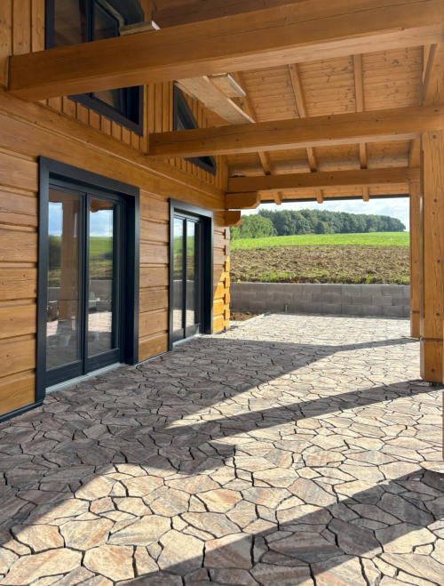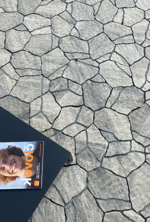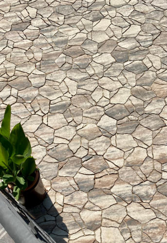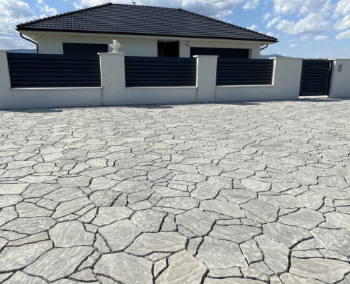 Sestava nepravidelných kamenů, která imituje přírodní kámen. Pro svůj atraktivní vzhled je tato reliéfní dlažba často vyhledávaná